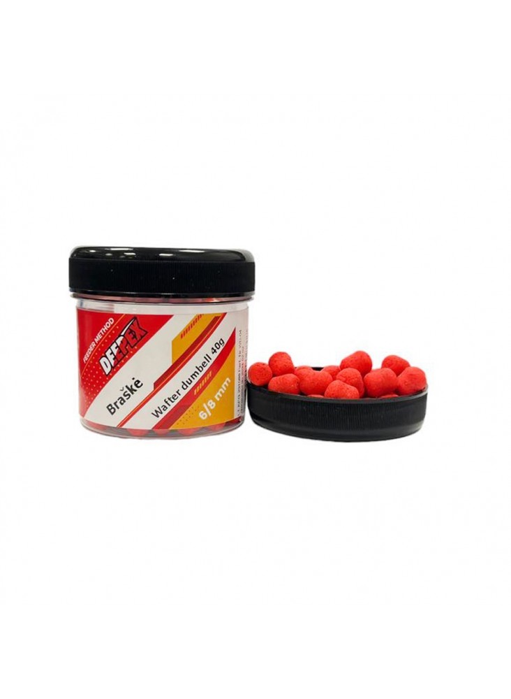 Deepex Wafter Dumbell - 2022 metų naujiena! Stipraus kvapo bei tinkamai parinktų spalvų wafteriai pritaikyti žvejybai su plauko sistema ir puikiai tinkantys gaudymui Method Feeder būdu. Pailgos formos, plūdrūs masalai puikiai tinka karpių, karšių, lynų ir kitų žuvų žūklei. Pakuotėje yra 6/8mm dydžio boiliukai. Deepex kompanija turi ilgametę patirtį gamindami masalus karpių žūklei. Didelis žinių bagažas, nuolatinės konsultacijos su žvejais ir pastovus tobulėjimas leidžia sukurti ir šiuos ypatingai kibius bei kokybiškus masalus!