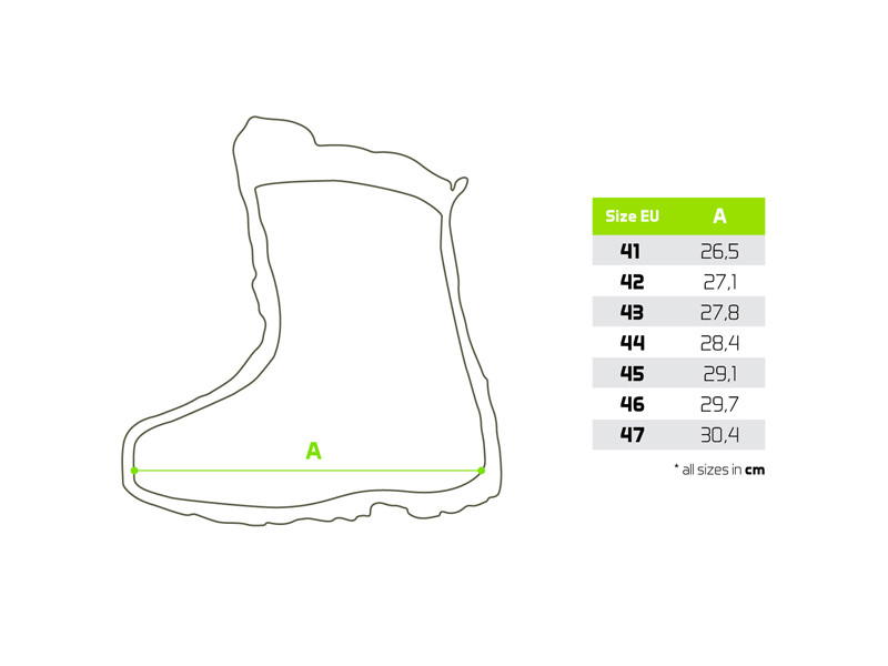 Delphin GATOR shoes are designed for extreme expeditions especially in colder times of the year. The raised rubber rim of the sole reaches to the height of the ankles, which means walking in puddle, melted snow and mud is not a problem for GATOR. This rubber part is also very easy to clean. In the back of the rubber part of the shoe there is a protrusion, thanks to which you can take off the shoe without problems. The upper part is made of a combination of durable nylon fabric and artificial leather. These materials resist bad weather and are easily impregnated if necessary. The tongue of the shoe is sewn to a height of 17cm, which means that you can move in such deep damp areas for a short time. The lacing is done through textile eyelets, at the top of the lacing there is one metal eye. The inside of the shoe is made of a comfortable microfleece. Thermal comfort is provided by a layer of an artificial microfiber between the outer and inner layers. The black and green combination of materials will be appreciated not only by fishermen, but also by hunters, hikers and all other nature lovers. Despite the robustness, shoes are very lightweight, which certainly comes in handy for a longer walk. For example, both shoes size 43 weigh only 1200g.