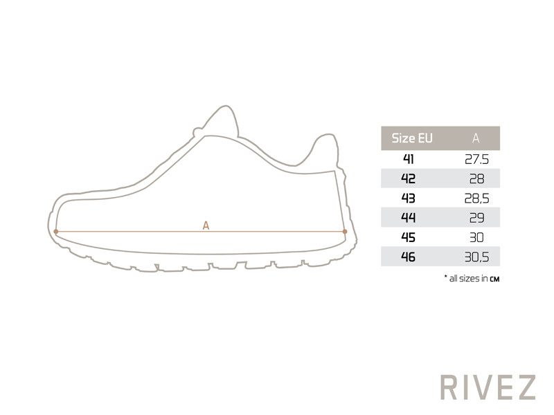 „RIVEZ“ modelis sukurtas patogiam ir saugiam avėjimui visą dieną net ir sudėtingesnėje aplinkoje, kur pasitikėjimas kiekvienu žingsniu yra būtinas. Jų pagrindinis ir svarbiausias privalumas yra atsparumas vandeniui, kurį užtikrina speciali membraninė kojinė bato viduje. Dėl šio sprendimo jums nereikia jaudintis dėl šlapios žolės, staigaus lietaus ar purvo. Jūsų pėdos patikimai išliks sausos bet kokiomis aplinkybėmis.