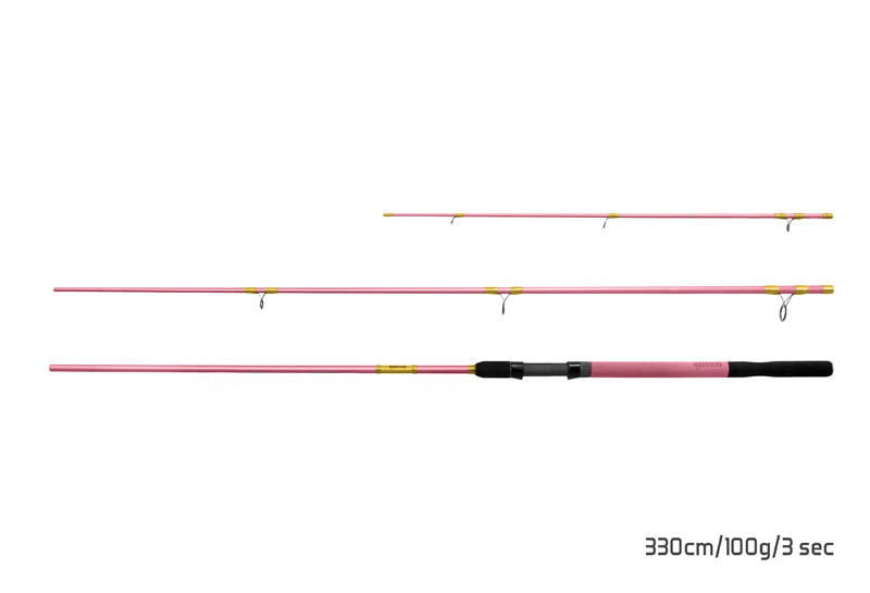 This rod is based on a slim blank with parabolic action and extraordinary mechanical properties. The whole handle is coated in EVA foam that is very soft to touch even in cold weather. Plus, it’s designed in colours that go very well together—pink and black. The handle has an ergonomic shape and a stylish pink aluminium butt cap with a logo. With sensitive tips such as these, you won’t miss a single bite, however small the fish may be! The blank is fitted with high quality, lightweight SIC guides that let the line glide smoothly through. The rod comes with 1 carbon (Heavy) and 2 CarbonGlass (Light, Medium) tips.