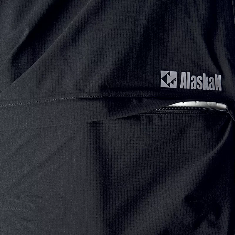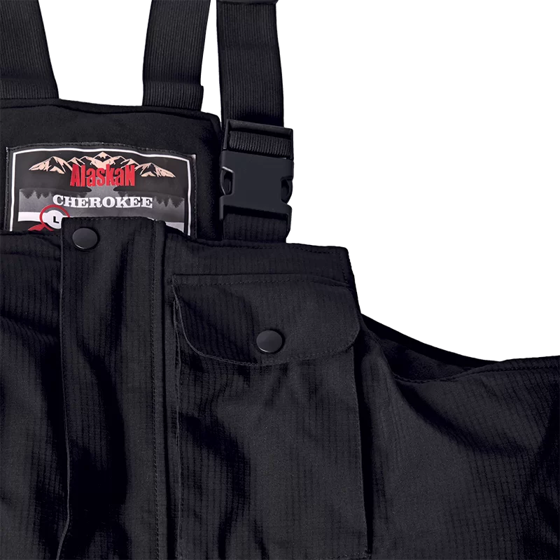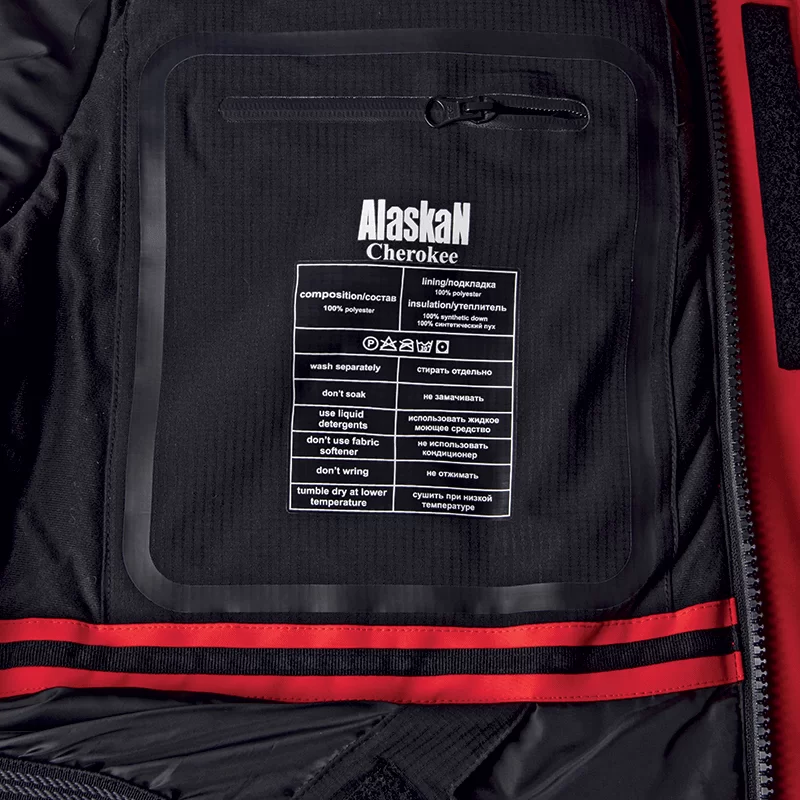 Alaskan “Cherokee” kostiumo ypatumas slypi tame, kad striukė priekinėse ir galinėse detalėse turi putplasčio intarpus. Striukė izoliuota dirbtine „Synthetic Down“ izoliacija, turi ryškių spalvų derinį ir aprūpinta atspindinčiais dekoratyviniais elementais. Striukės rankovės turi vidinius neopreno rankogalius. Puskombinezonis kaip ir striukė, turi „Synthetic Down“ dirbtinę izoliaciją, taip pat putplasčio įdėklus kombinezono ir kelių gale. Dėka AERO-TEX medžiagos, kuri nesudrėksta, yra atspari vėjui, taip pat pasižymi aukštomis „kvėpuojančiomis“ savybėmis, kostiumas sukuria maksimalų komfortą ekstremaliomis sąlygomis. Visos siūlės yra klijuotos.