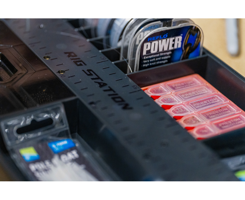 Ideal for rig preparation, the Rig Station stores all of the essential rig making materials such as line, shot, floats and small accessories like hooks and silicone.