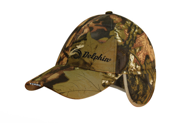 Žieminė kepuraitė – šiltu pamušalu pamušta „Delphin“ kepuraitė su LED lemputėmis, maskuojamojo dizaino. UNI dydžio kepuraitė turi guminį užveržimo mechanizmą gale, kuris leidžia nustatyti reikiamą galvos apdangalą, kad ji patogiai tiktų visiems. Didžiausias jos privalumas – 5 LED lemputės priekinėje kepuraitės dalyje, kurias galima naudoti esant prastam matomumui. LED lemputės suteikia pakankamai šviesos, kad tam tikromis sąlygomis pakeistų LED galvos žibintus. LED lemputes galima įjungti apatinėje kepuraitės dalyje, o komplekte yra 2 baterijos, esančios galinėje pusėje (baterijos yra pakuotėje)! Kitas jos privalumas – išsiskleidžiantis įdėklas aplink ausis ir kaklą, kuris prireikus gali uždengti šias dalis ir apsaugoti jas nuo šalčio.